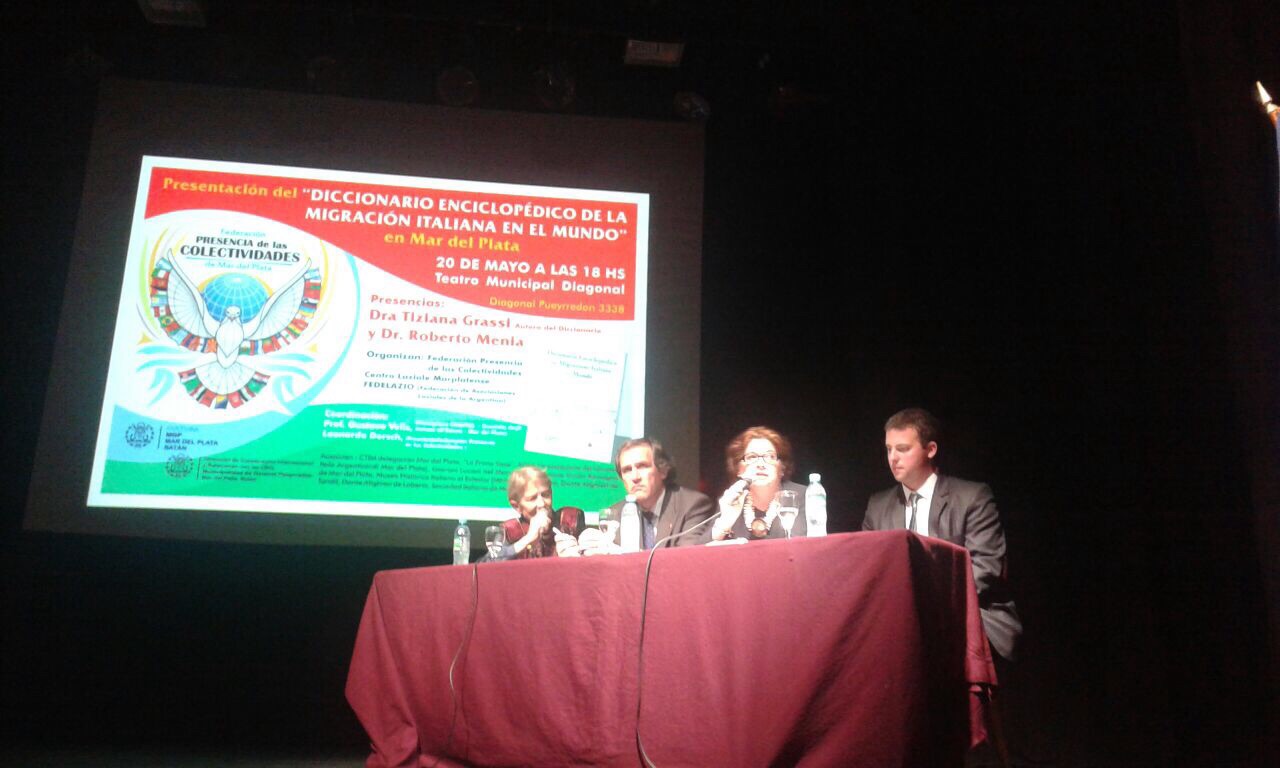 In serata ha po preso parte alla presentazione all’Istituto italiano di cultura del Dizionario delle Migrazioni di Tiziana Grassi, alla presenza del Console generale d’italia Curci che ha portato il saluto iniziale. All’incontro erano presenti anche l’on Giuseppe Angeli presidente del Ctim Argentina. Pedro Nefonte, di Rosario, e lo stesso Arena. Il delegato del Ctim Argentina Gustavo Velis è stato invece il gran mattatore della successiva giornata a Mar del Plata, dove il Dizionario delle migrazioni Italiane nel Mondo è stato presentato, a cura del Ctim, presso il Teatro Municipal in un’atmosfera di intensa partecipazione e calore.