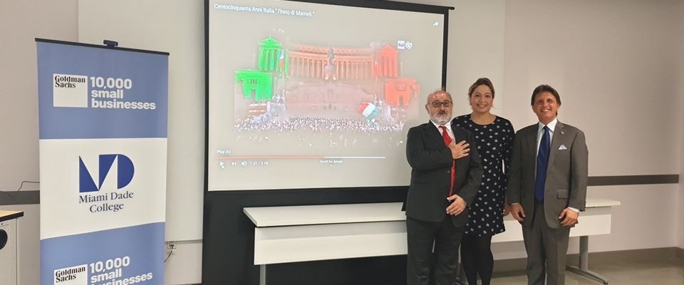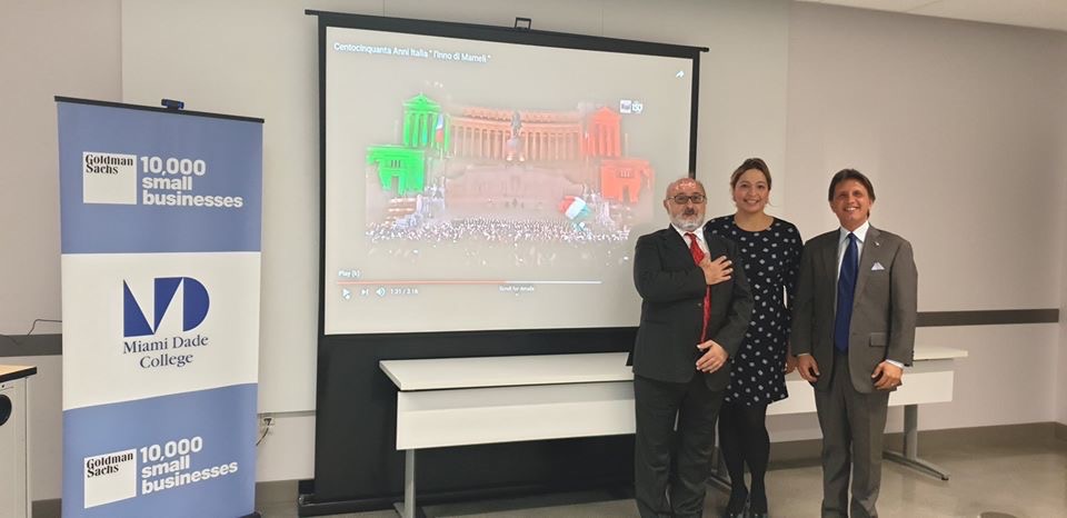 Luciano Berti, Treasurer of Miami Scientific Italian Commuity, President and CEO, owner, Hospital medical supplies, Importer in Italy and distributor for European and U.S. Manufacturer; Pamela Fuertes Executive Director, Goldman Sachs 10,000 Small Businesses Program at Miami Dade Colleg and Fabio De Furia President of Miami Scientific Italian Community.